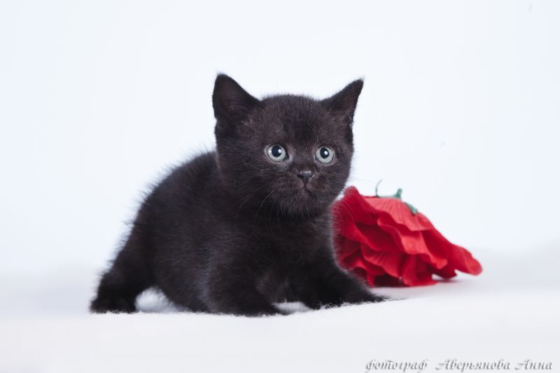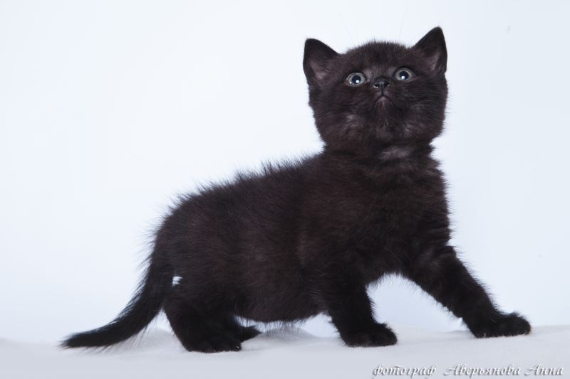 Азала перевод с египетского ДОСТОИНСТВО. Азалочка родилась в нашем питомнике и оставлена для дальнейшей племенной работы. Когда мы её увидели только что родившуюся, единогласно все ласково сказали: "Бульдожка" - большая британская голова, маленькое мощное, как у бульдога, тельце и очень короткая шерсть больше напоминающая флок. Решение было вынесено сразу - оставлять девочку в питомнике. Бульдожка наша хорошела день ото дня. Сейчас её шубка сравнима только с чёрным переливающимся мутоном. У неё мощное тело с тяжелым костяком, маленькие и очень правильного постава ушки на круглой, как шарик голове, очень сильный подбородок с правильным прикусом. Одно сплошное ДОСТОИНСТВО и полное соответствие своему имени!