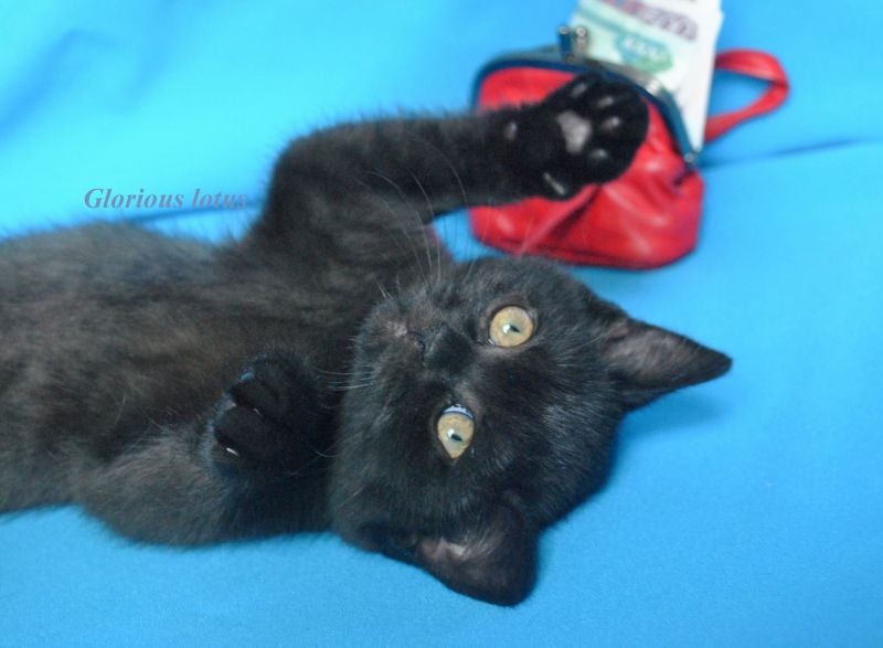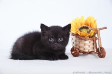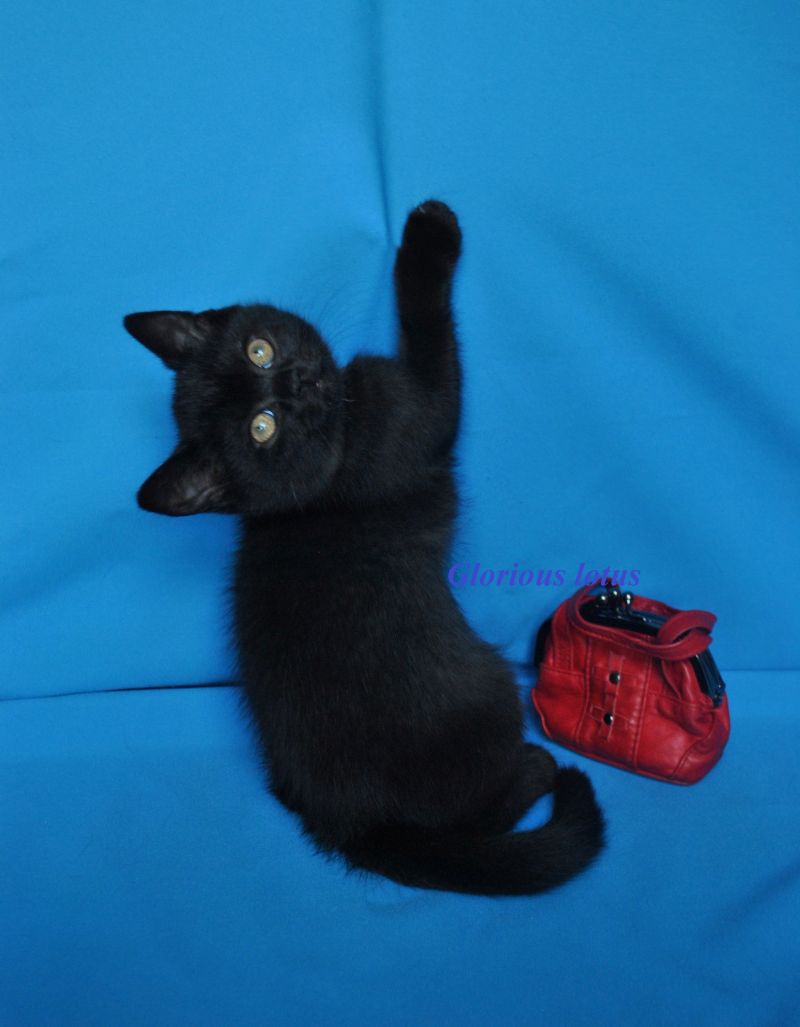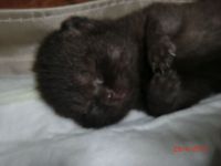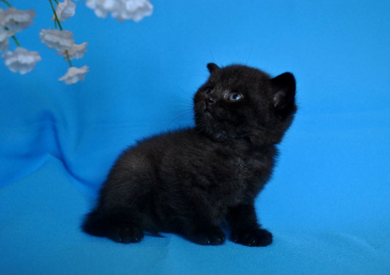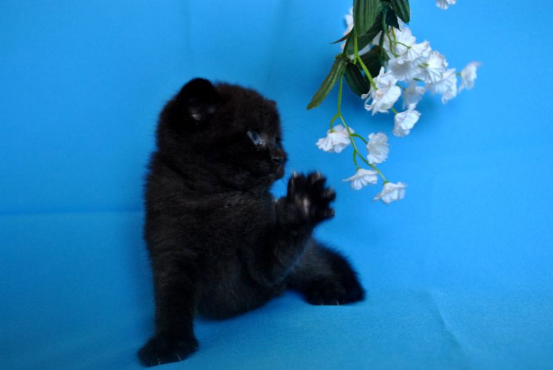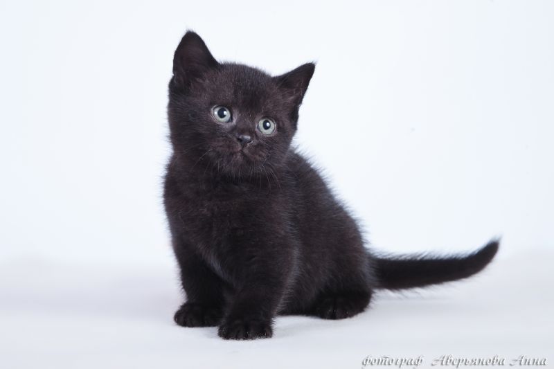 Азала перевод с египетского ДОСТОИНСТВО. Азалочка родилась в нашем питомнике и оставлена для дальнейшей племенной работы.  Когда мы её увидели только что родившуюся, единогласно все ласково сказали: "Бульдожка" - большая британская голова, маленькое мощное, как у бульдога, тельце и очень короткая шерсть больше напоминающая флок. Решение было вынесено сразу - оставлять девочку в питомнике. Бульдожка наша хорошела день ото дня. Сейчас её шубка сравнима только с чёрным переливающимся мутоном. У неё мощное тело с тяжелым костяком, маленькие и очень правильного постава ушки на круглой, как шарик голове, очень сильный подбородок с правильным прикусом. Одно сплошное ДОСТОИНСТВО и полное соответствие своему имени!