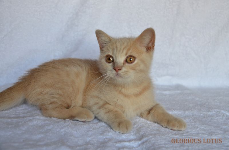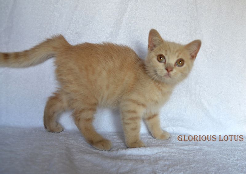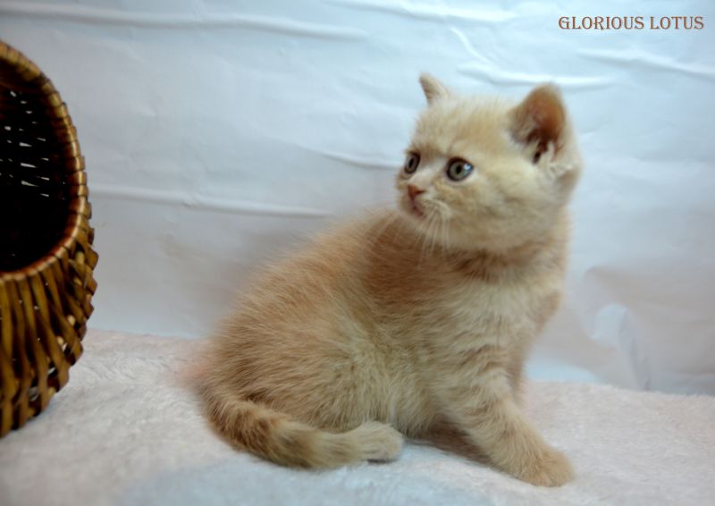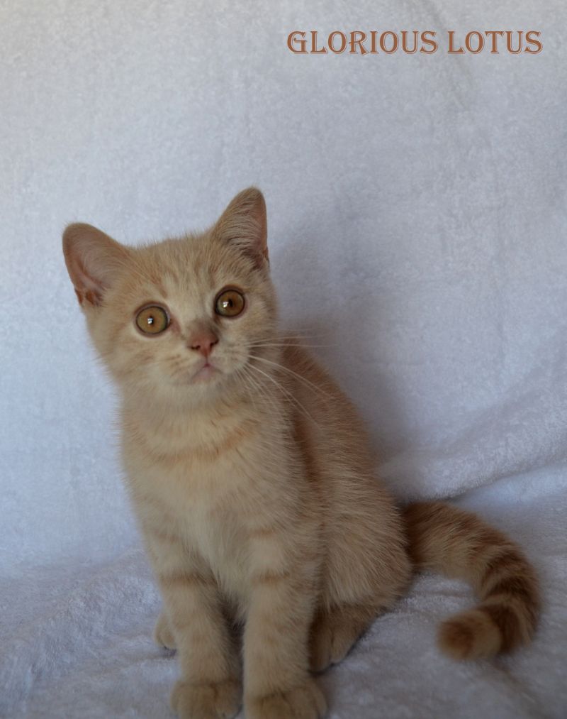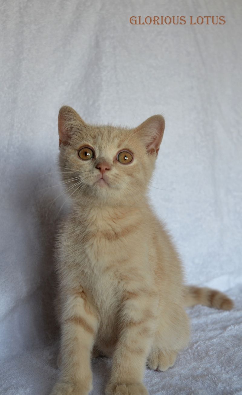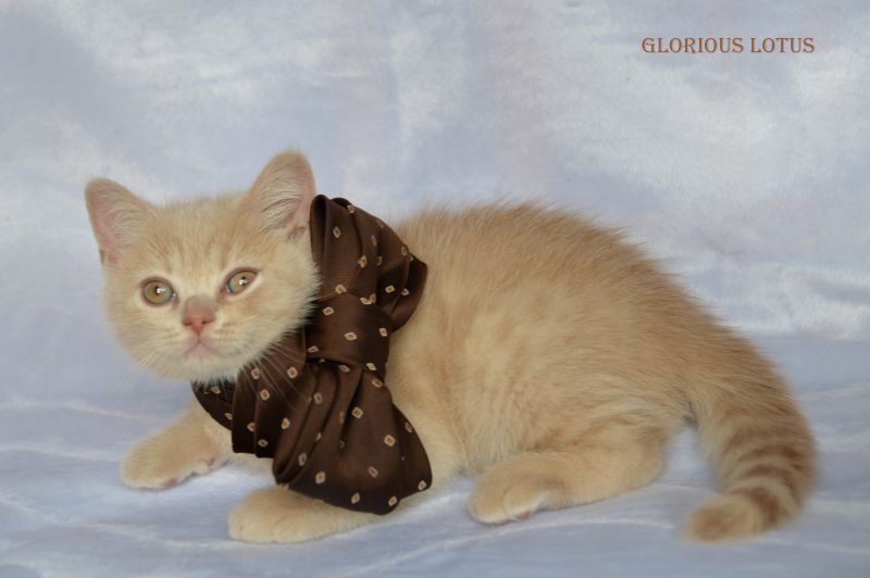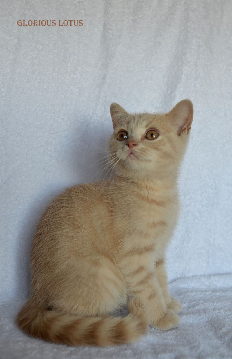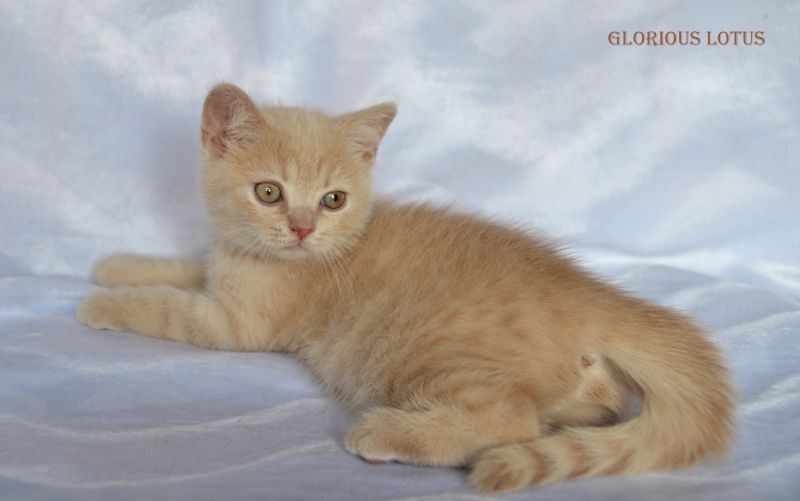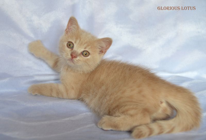 Кремовый мальчик. Носитель гена циннамон и короткой шерсти. Умный серьёзный мальчик и такой же ласковый и мурчащий, как все его однопомётники. Довольно крупный малыш. Несёт ген короткой шерсти, окрасы циннамон, шоколад. Мальчишка хорошо сложен (с круглой головой, правильным поставом ушек, мощный тяжёлый костяк, огромные круглые глаза, которые после перецвета будут очень яркими и выразительными. Набивная шубка с короткой жёсткой шерстью. Очень интересный породный тип. Вырастит в мошного огромного котищу с очень нежным темпераментом. Продан в Санкт-Петербург в качестве домашнего любимца. Владелец Чеснов Валерий. Дома его зовут Руслан, Рустик.
