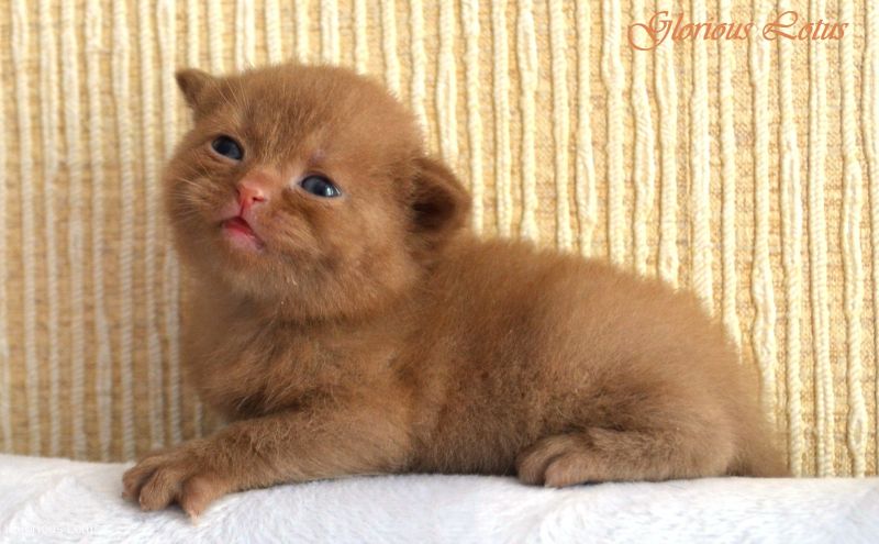 Фадюша ласковый жизнерадостный мальчик. Не несёт ген ДШ, генетически тиккированный в плюшевой шубке двойной текстуры. Мальчик имеет мускулистое мощное тело на толстых крепких конечностях.
