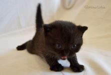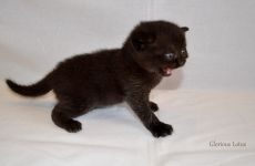 Чёрная тиккированная девочка, носительница гена циннамон. Обладательница плотно набивной короткой шубки с самым замечательным характером.