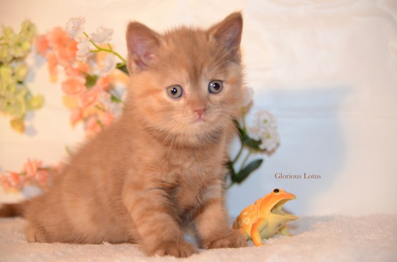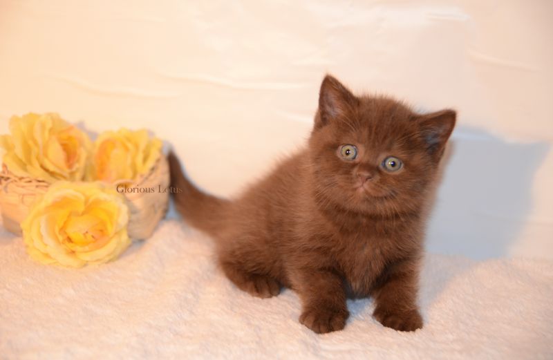 В помёте пять котят: 1 мальчик (окрас: лиловый (c) носитель гена циннамон, тиккированный) и 4 девочки (окрасы: 1-на циннамоновый черепаховый (q), 2-е шоколадный черепаховый (h) - одна из них тиккирована и 1-на шоколадный (b). Все являются носителями гена циннамон). Все котята с геном короткой шерсти.